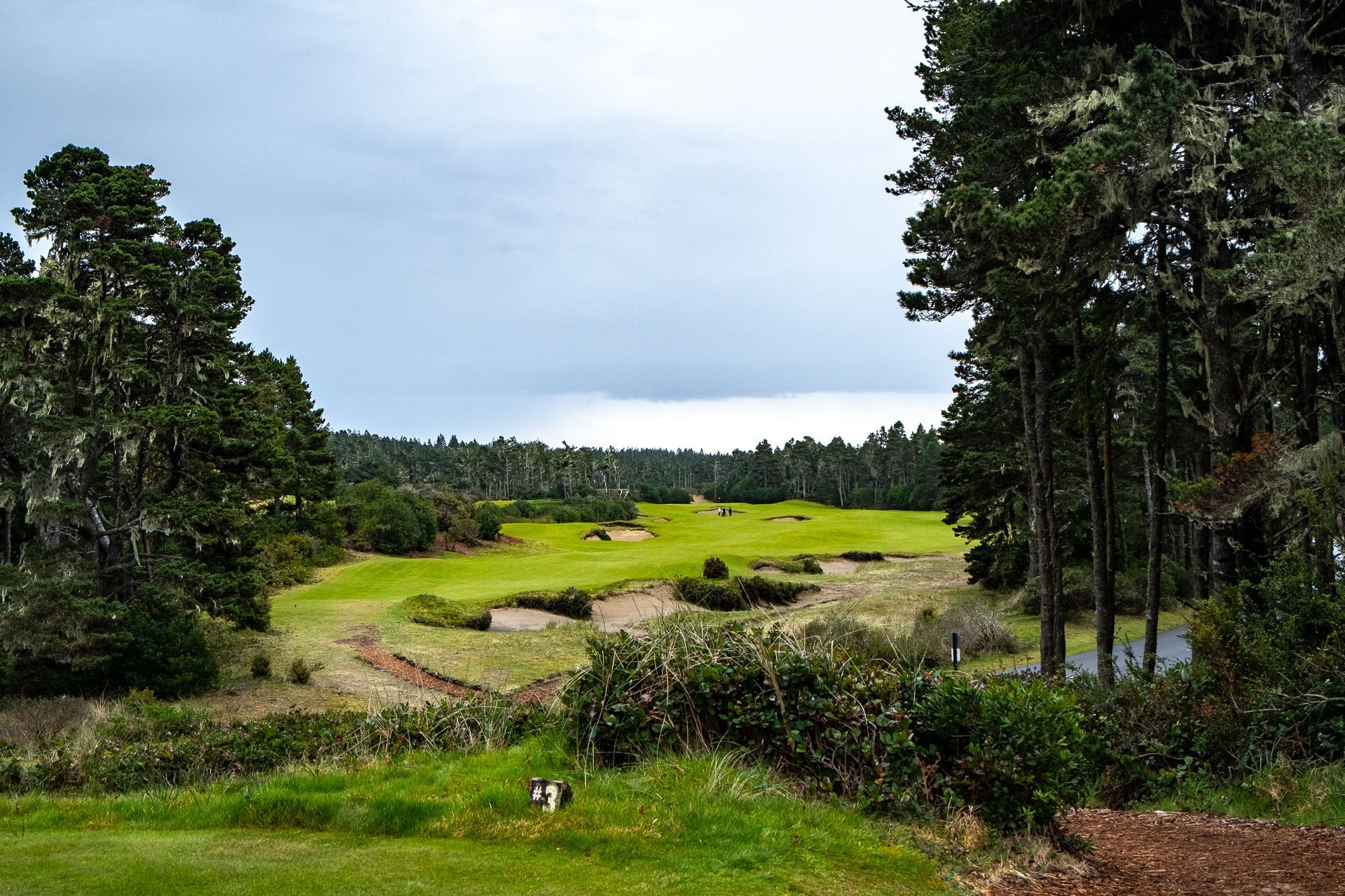 But Trails is the only course on property that isn’t really links, even if the weather tried to trick us into thinking it was. The dense, old-growth forest that the course is built in made it seem like the shuttle driver got lost and accidentally dropped us off in the interior of British Columbia. It was a stunning change in scenery that threw us off our game, but we soon understood why the poor saps stuck playing Sheep Range or Pacific Dunes called us lucky. The forest at Trails blocked most of the wind, and while they were having their balls blown off the green and into the ocean, there were holes in the tree-lined valleys where the only breeze came from our own panting breath as we navigated the steep, elevated tee boxes.