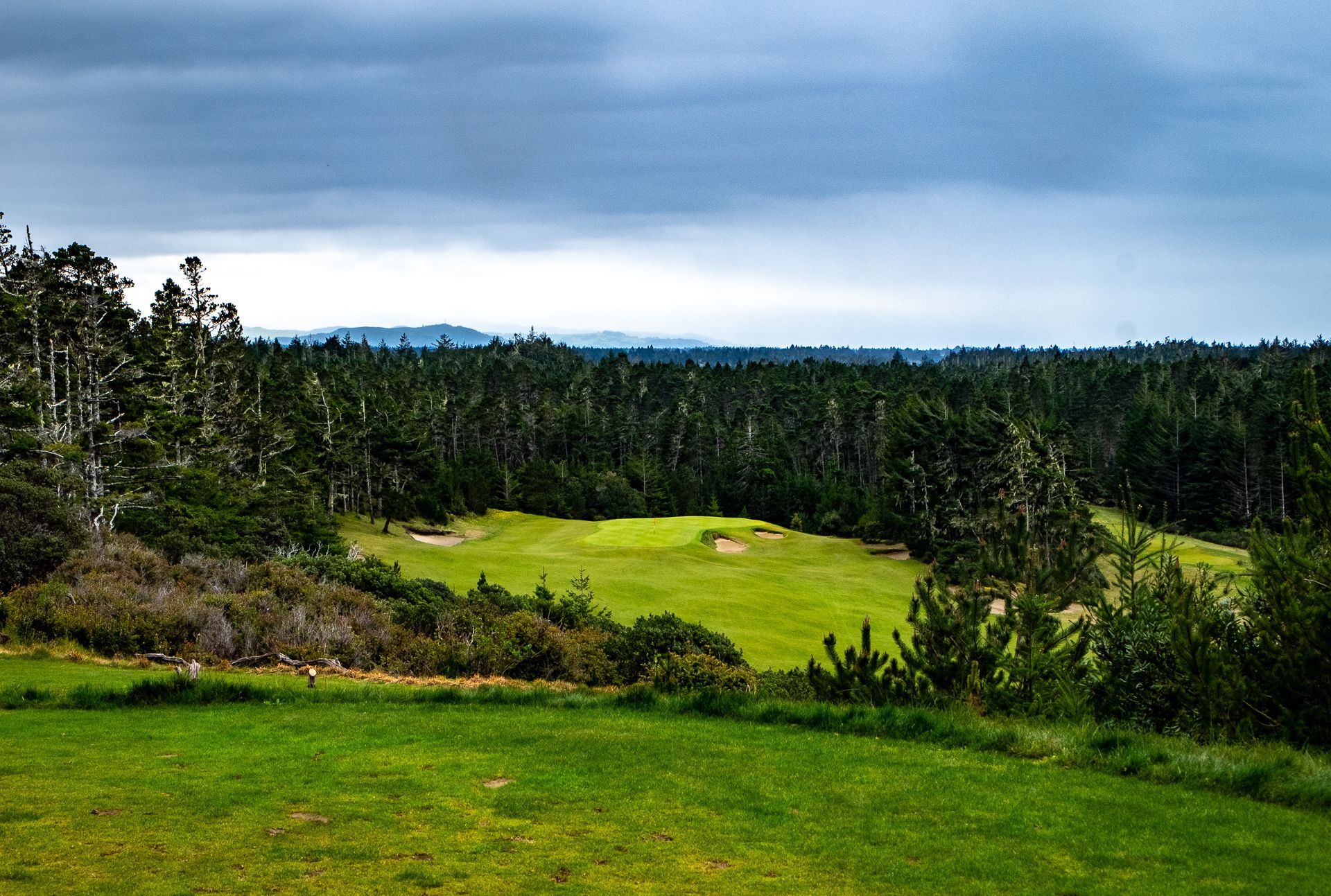 too perfect? We again lucked out playing Pacific on this day - not only was this the warmest, sunniest weather we got all week, it was also the calmest winds we faced. That doesn’t mean the golf gods were letting us of easy, though. This was Oregon in March after all, and one of the most vivid memories I have is looking out from the fairway to the ocean and seeing a perfectly straight line separating an approaching wall of dark grey cloud. The sky was split completely in two: one half, out over the ocean, was grey and dark and ominous, and the other, the part that was still over our heads, was blue and cloudless. The grey wall would soon hit us with a vengeance, and we’d have to throw on three layers for 15 minutes until we saw those lines reverse, with the blue sky replacing the grey out at sea.
