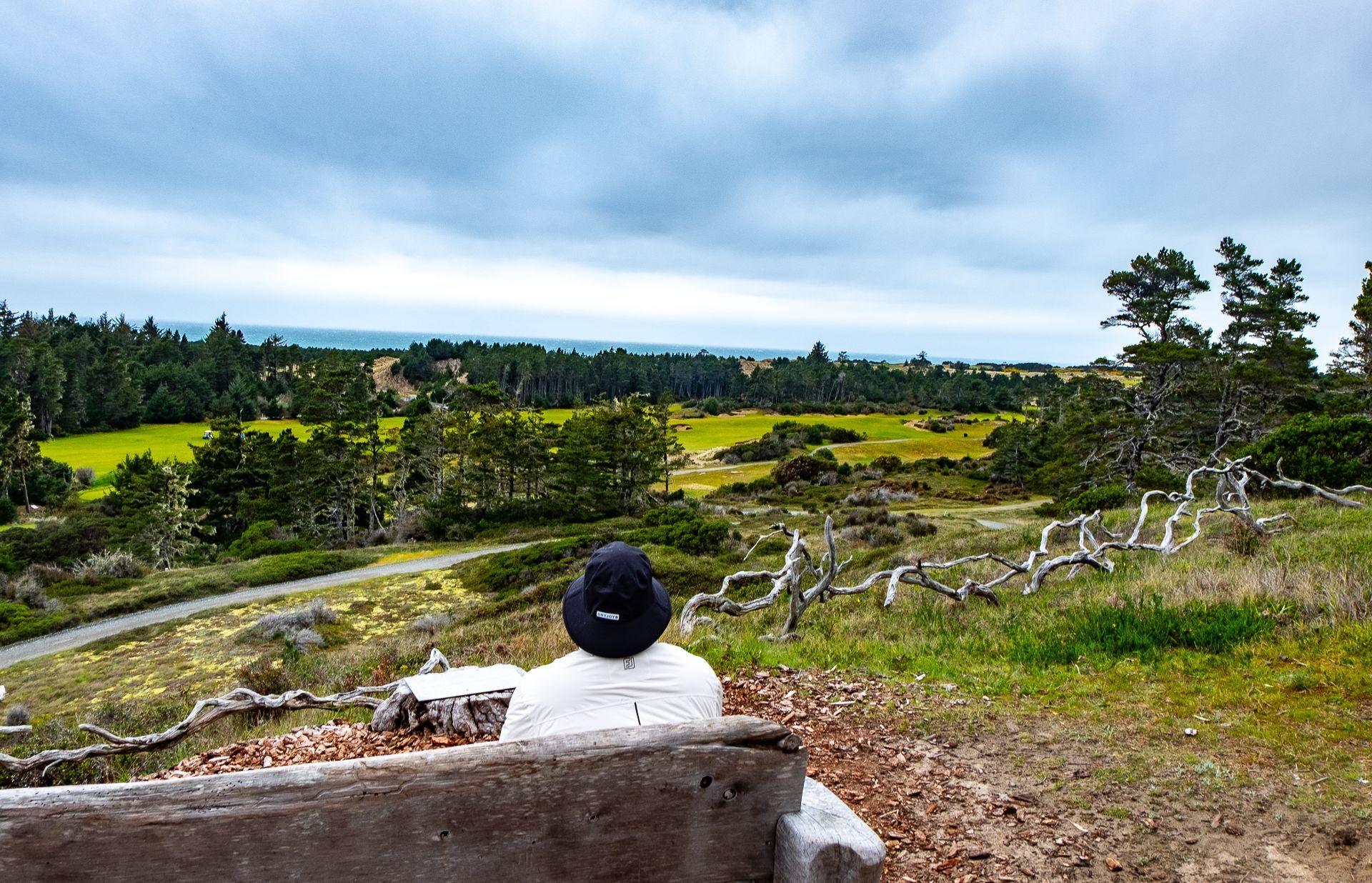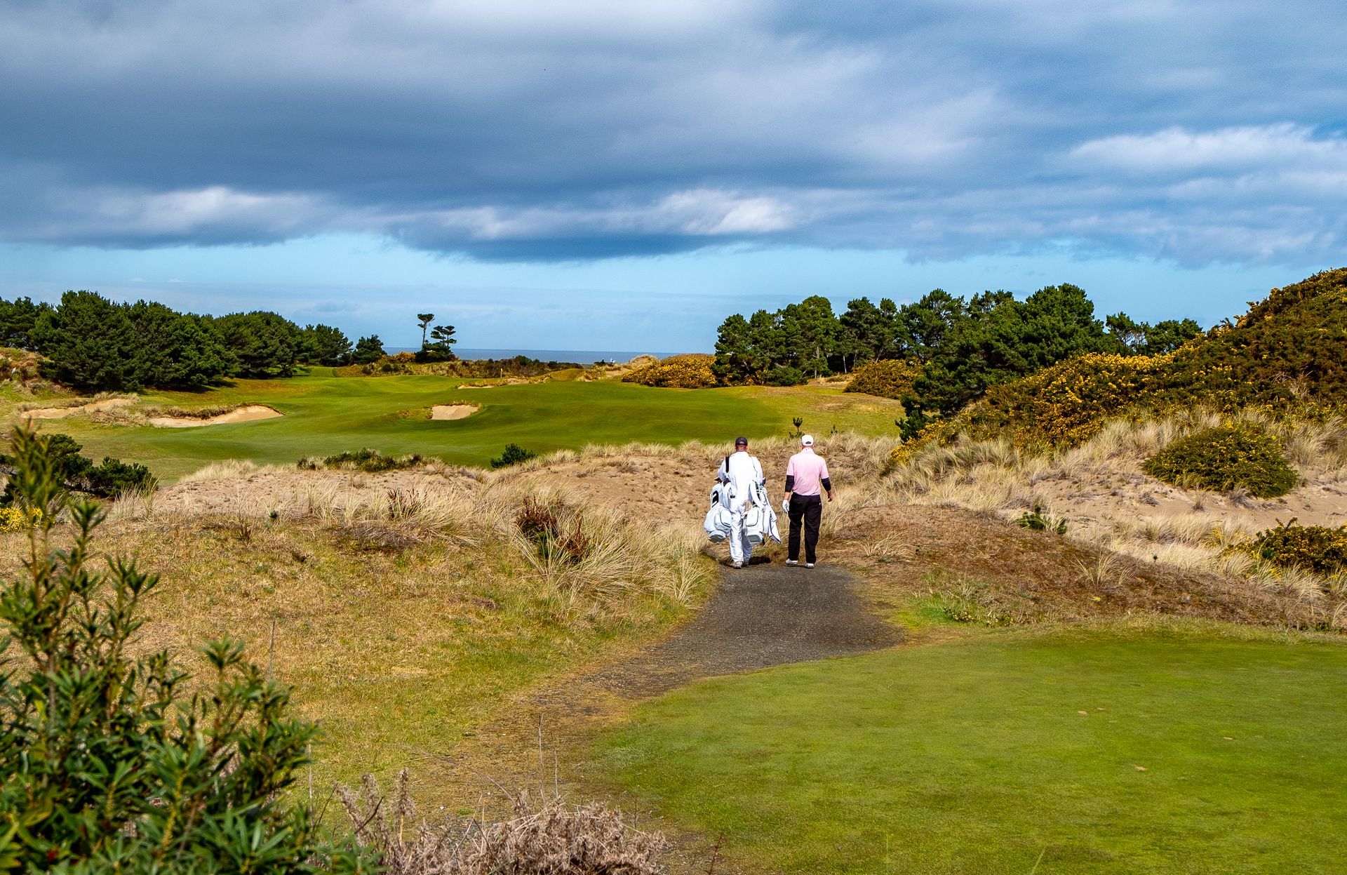 If I’ve done this right, being specific doesn’t just mean describing what we saw and ate, nor what scores we shot (although even I could not resist the temptations of a few humble brags). When I sat down to write all this, I was of course drawn to details – I will forever be able to conjure up a bird’s eye image, looking down on myself as “I” stare out from the Pacific Dunes’ cliffs and see the approaching grey wall of cloud and rain above, the whole scene making no sense since, where I am standing, there is nothing above but sun. But these details hardly seem to matter. What matters are the manifest feelings those details seem to now conjure up. Feelings that have no definitions.
