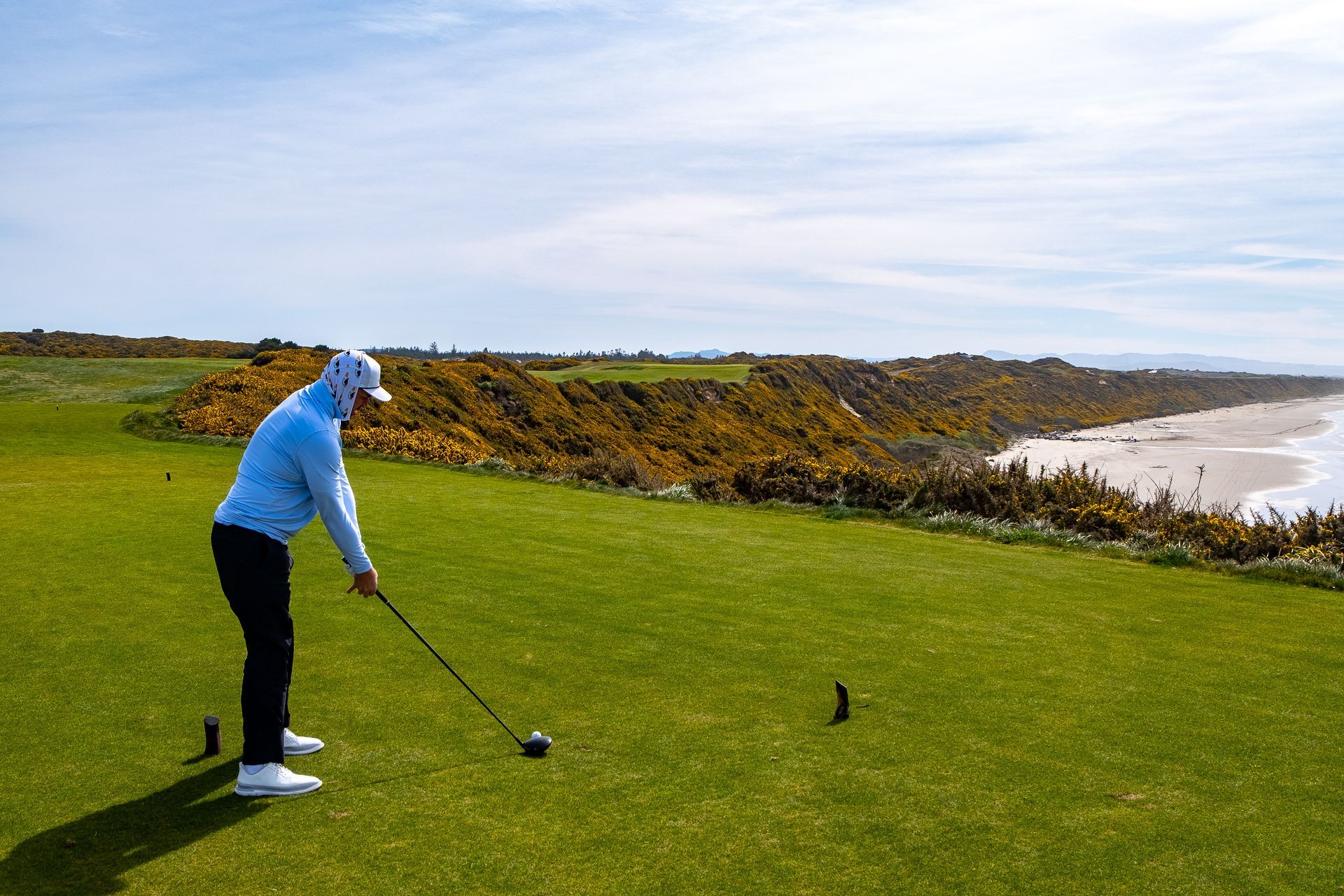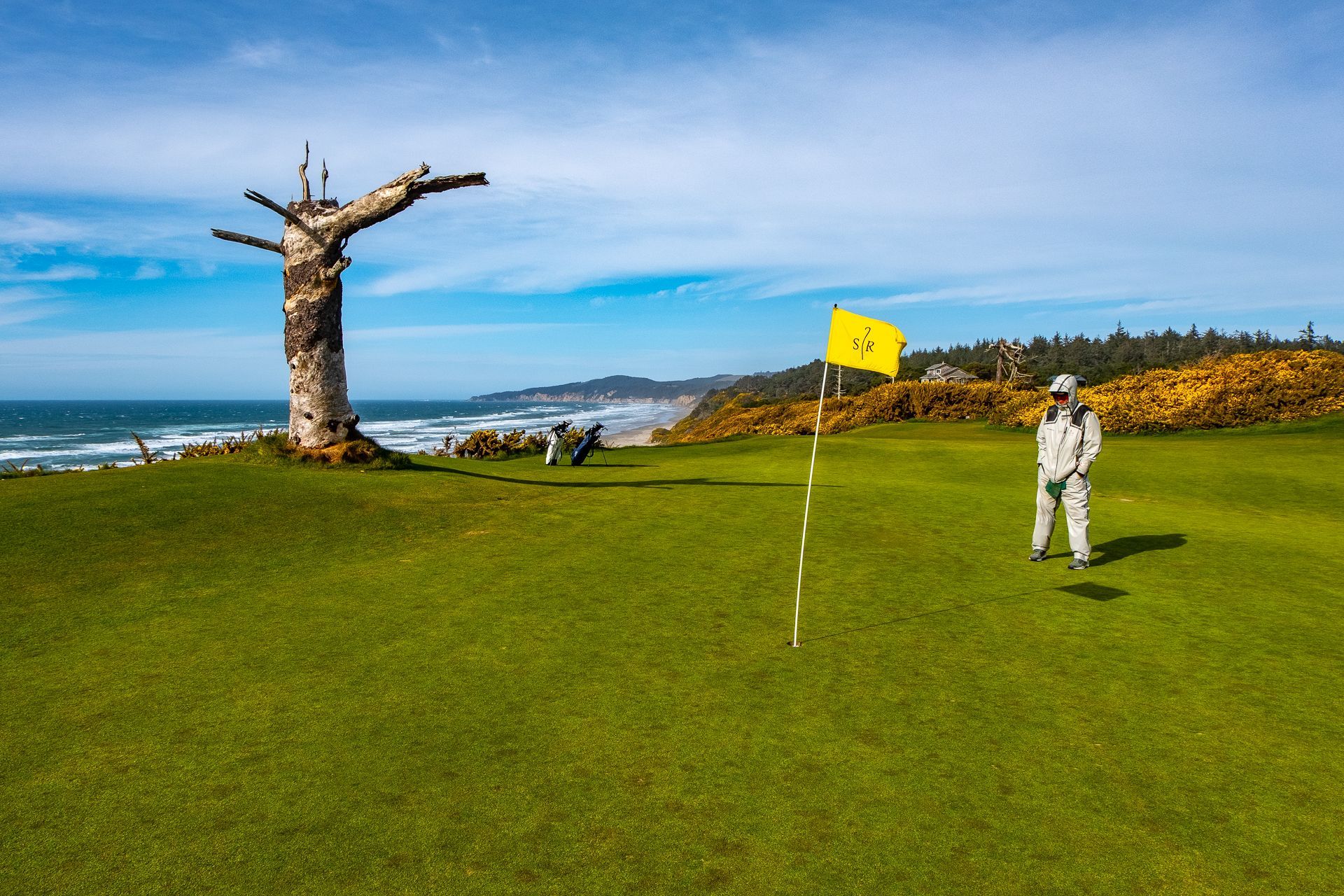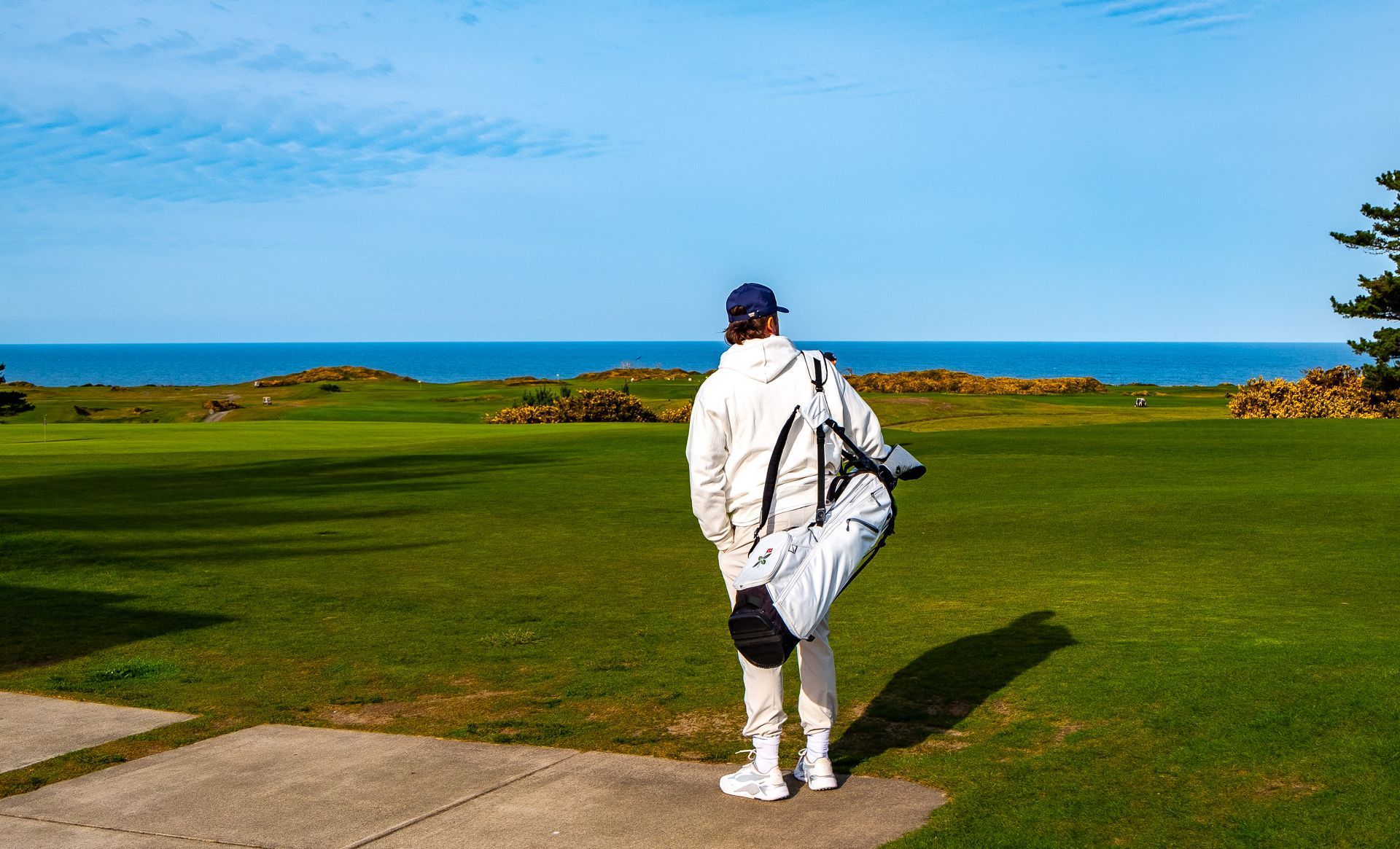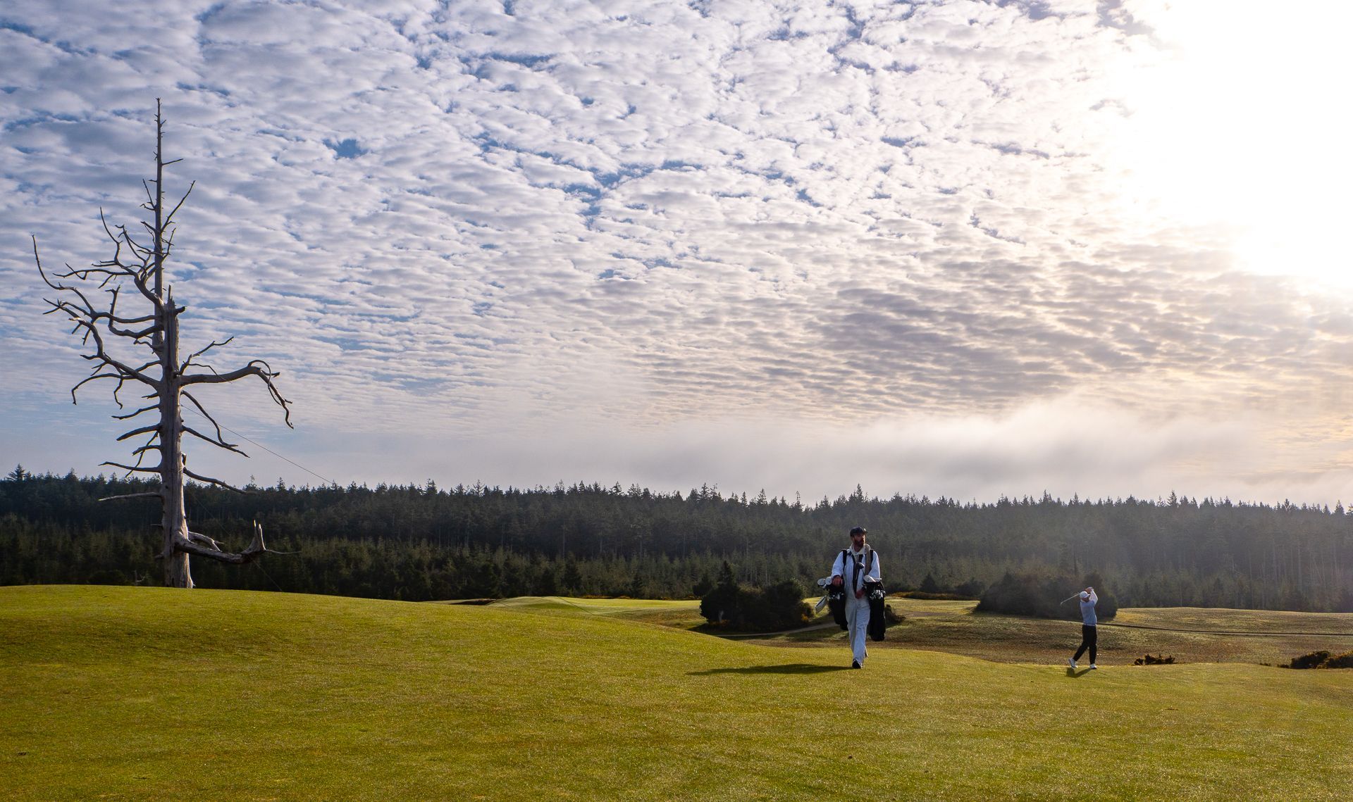 Shane was one of those strange types who looked like he could have been 42 or 78. Whatever answer he gave to “how old are you,” you’d have to take him at his word. He was in a full Bandon rainsuit and toque even though the sun had already burst through the marine layer and the day was now relatively warm and glorious. He didn’t say much, eventually grabbing two bags and walking to the first tee.