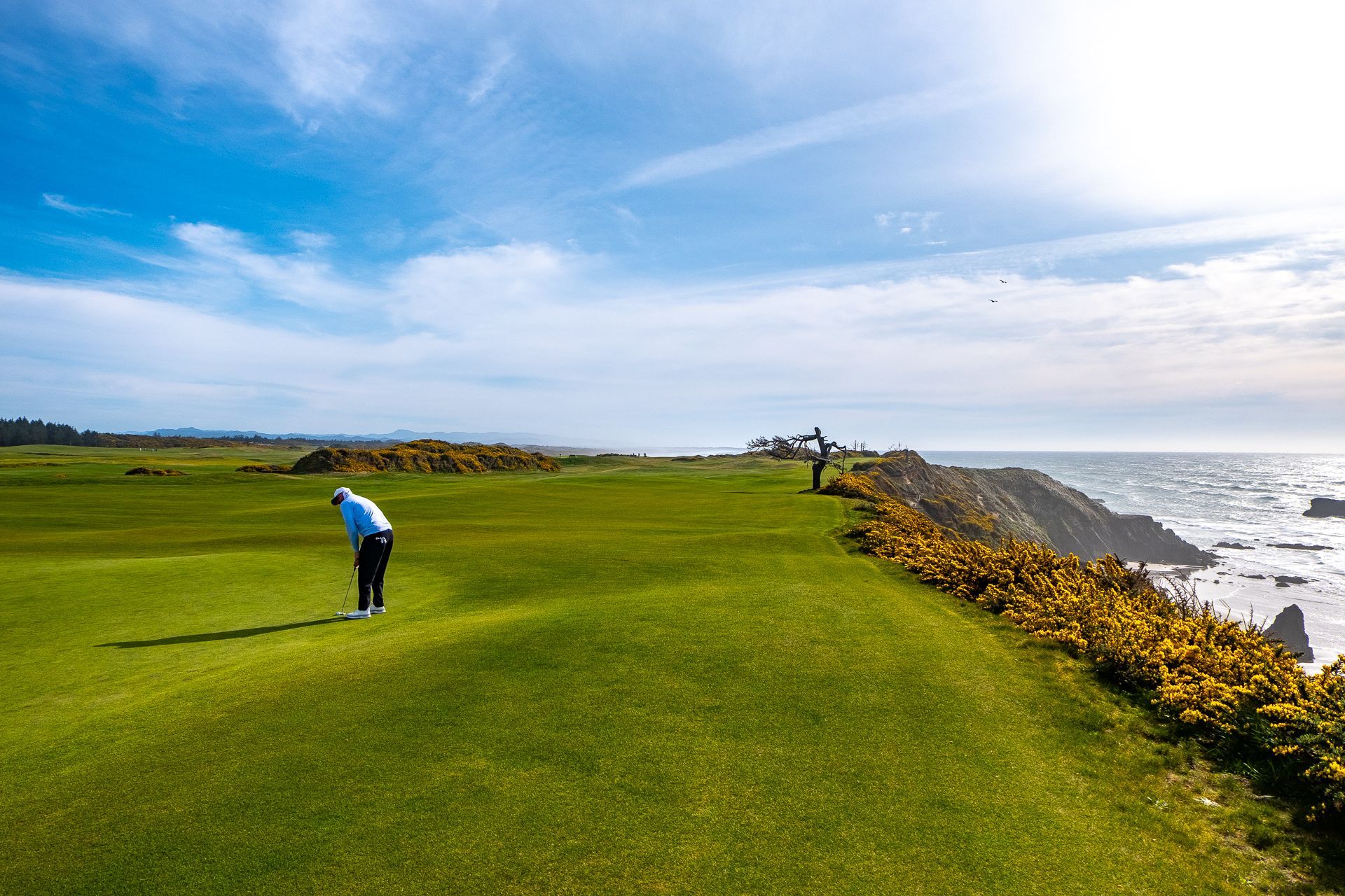 I didn’t want to start a fight, not this early. I was 2-under and we were with him all week, for better or worse. I wanted to keep the peace … plus, he had the look of a guy who once fought Grizzly bears for fun during his glory days, and I didn’t want to meet that guy. Not out here, where a body could all too easily “fall” off the cliffs and into the ocean, never to be seen again.
